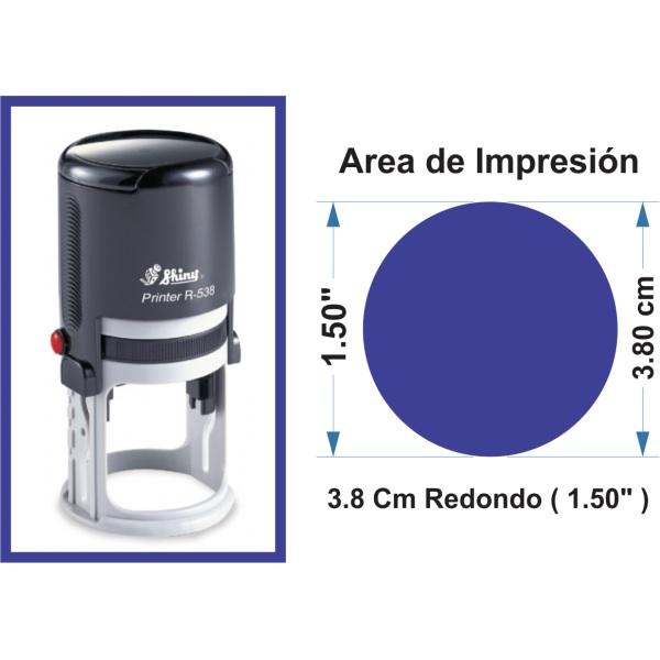 Shiny Round Self Inking Stamp R538, imprint size diameter 38mm. The self-inking stamp can be good for thousand impressions, the ink pad can be refilled or replaced. The replacement ink pad model is Shiny R538. This Shiny R538 suitable for name stamp, company round stamp, and personalized stamp.