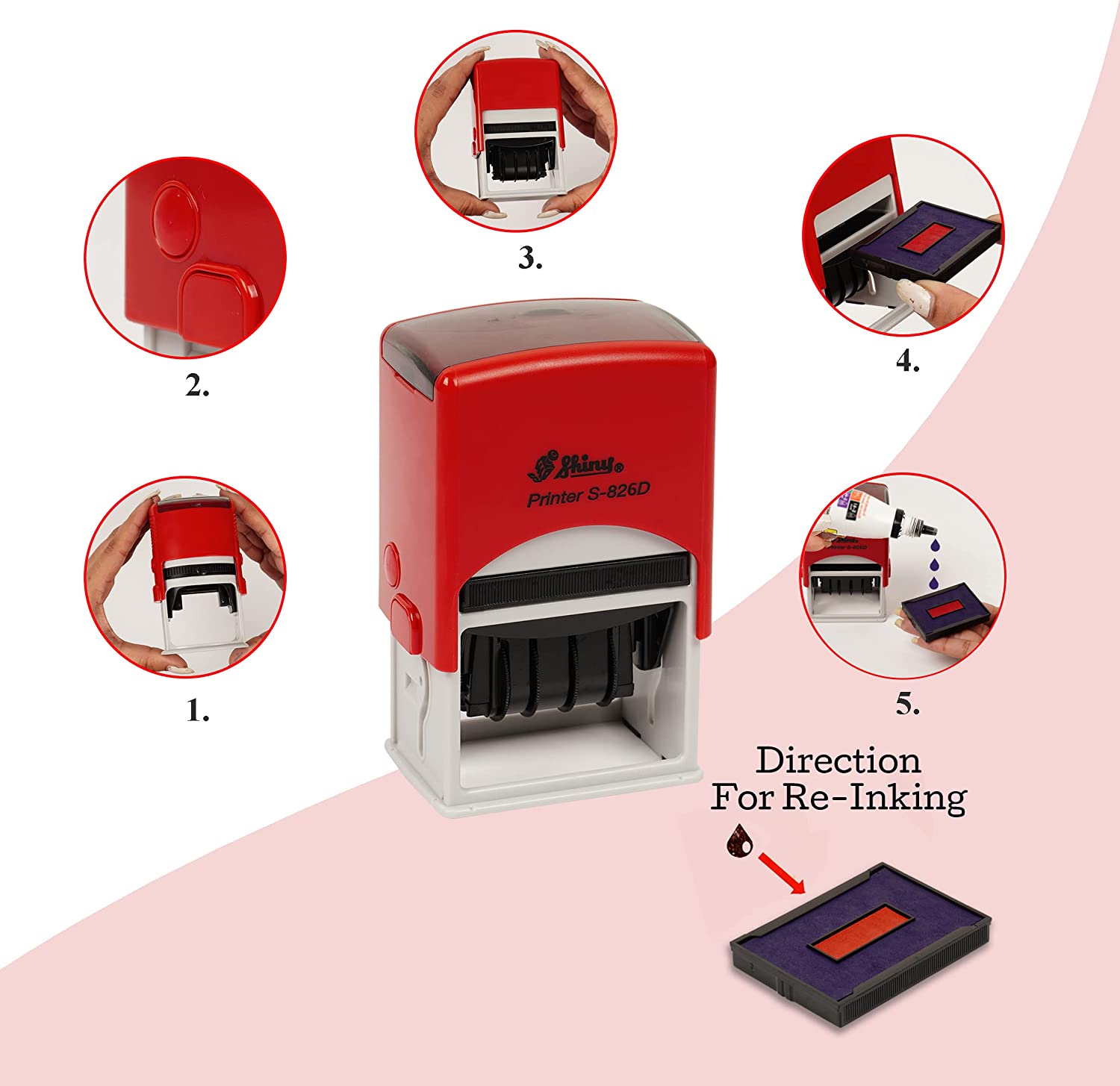 The Shiny S-826D is a premium self-inking dater stamp designed for offices, warehouses, banks, businesses, and professionals who require fast, accurate, and clean date stamping.