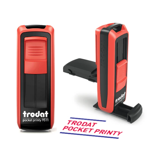 The Trodat 9511 Pocket Stamp is a compact, stylish and ultra-portable self-inking stamp designed for office professionals, doctors, teachers, business owners, and personal use.